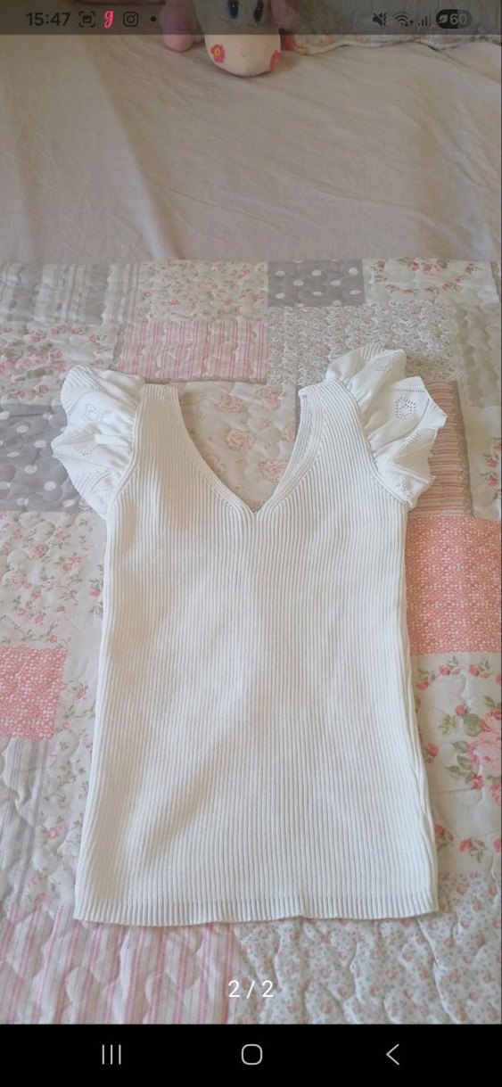 Kız Çocuk veya Kadin Beyaz V Yaka Fırfırlı Triko Yelek