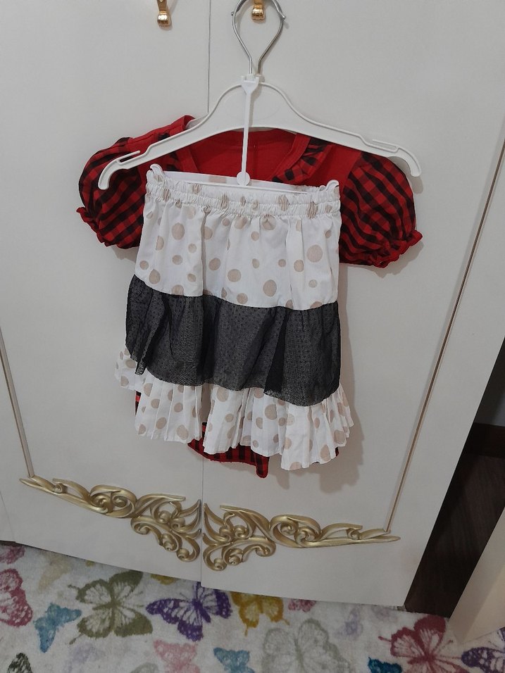 Kız çocuk elbisesi, volanlı ve bol kesimdir. , kısa kollu ve straplez yaka detaylıdır. Bohem tarzda şık bir modeldir. resimde görüldüğü gibidir