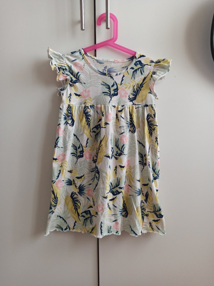 Kız Çocuk Yaprak Desenli Kısa Kollu Elbise