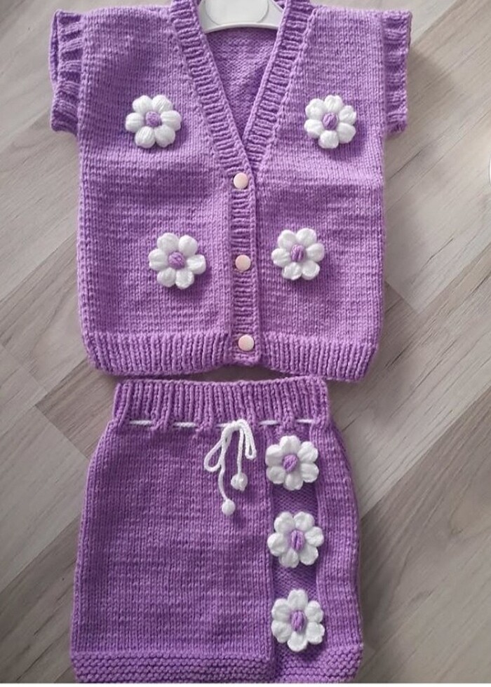 2 3 yas El örgüsü Kiz cocuk yelek etek takım