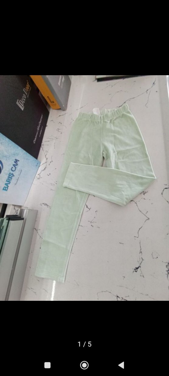 Yumuşak ve sıcak kumaştan yapılmış, pastel yeşil renkte, vücuda oturan kız çocuk taytı, sade ve rahat bir tarz sunar. kadife tayt