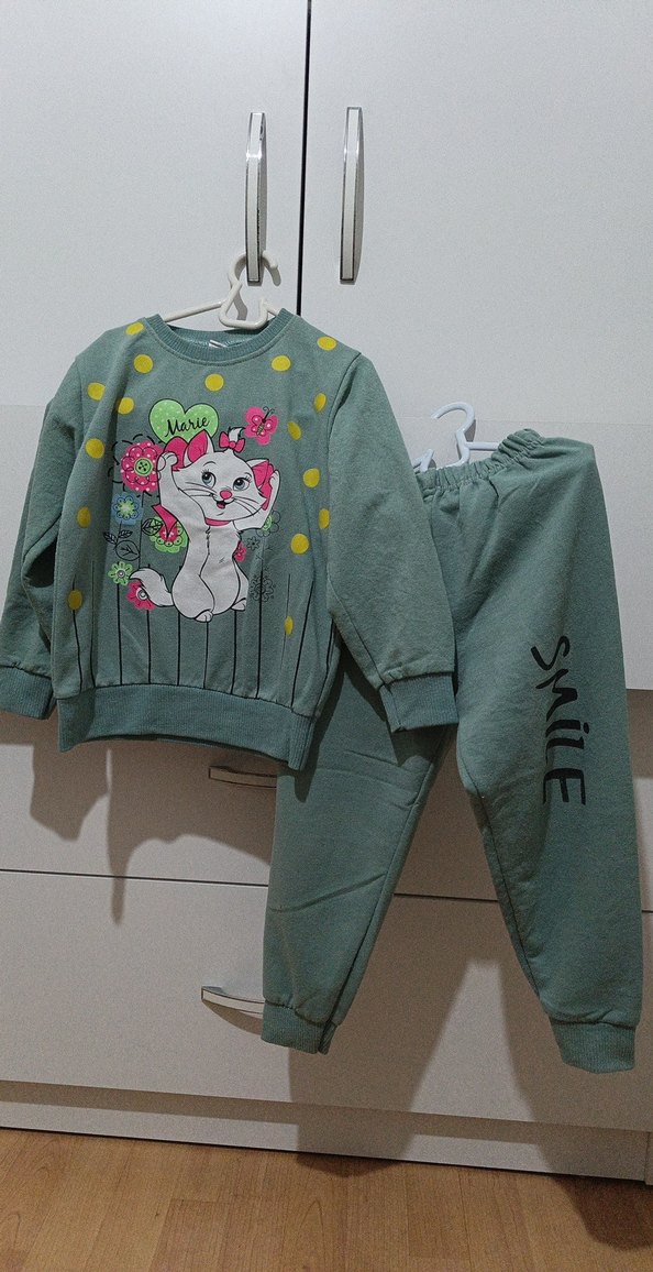 Kız Çocuk Yeşil Baskılı Sweatshirt ve Eşofman Takımı