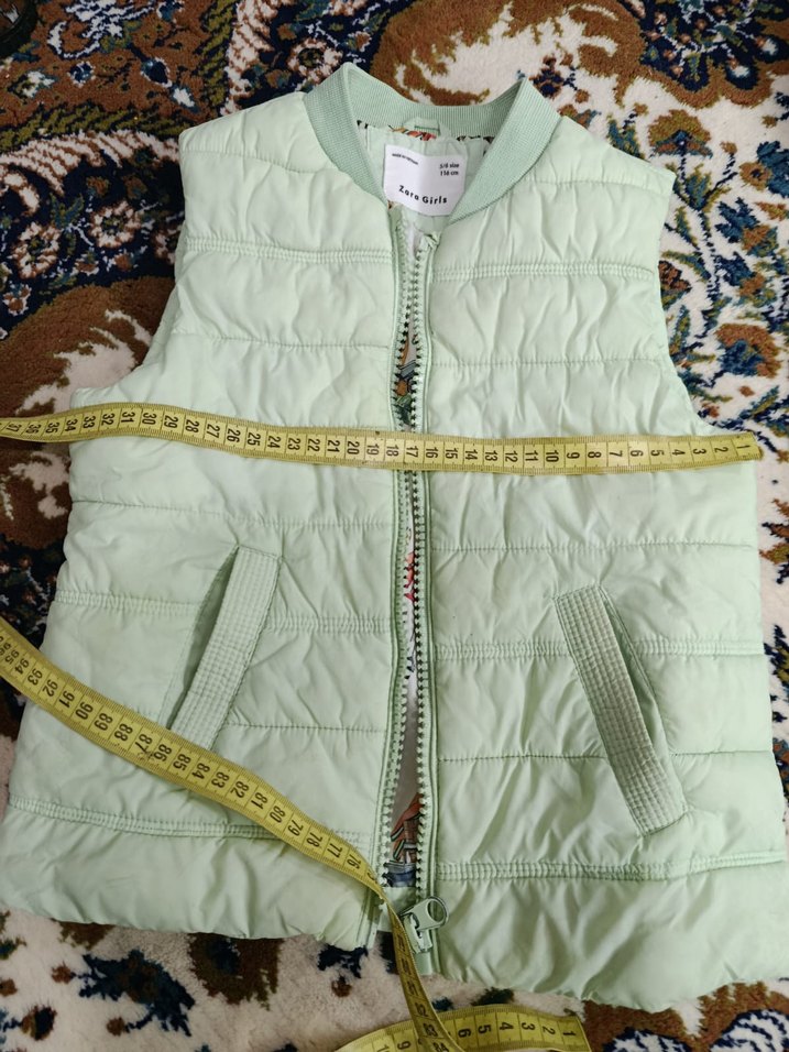 Kız çocukları için yeşil renkli, fermuarlı, straplez yaka ve kolsuz yelek. Yumuşak sentetik kumaştan, sade ve streetwear tarzında. hiç bir kusuru yok yeniden farksız