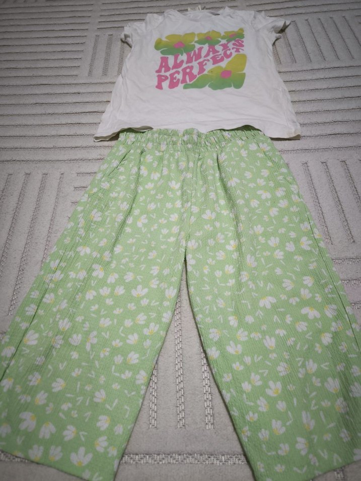 kız çocuk yeşil kapri ile beyaz t-shirt 8/9 yaş