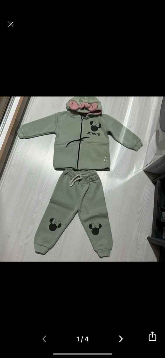 Fermuarlı kapüşonlu sweatshirt ve baskılı Minnie figürlü, kız çocuk eşofman takımı. Yumuşak ve sıcak kumaştan, trend günlük kullanım için uygundur.