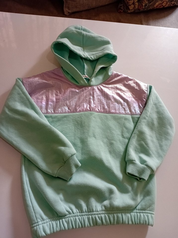 Kız çocuklar için pastel yeşil renkli, kapüşonlu ve fermuarlı detaylı sweatshirt. Uzun kollu, bol kesim ve yumuşak sıcak kumaştan üretilmiştir. 5 6 yas .. deniz köpüğü diye geciyordu rengi sıfır fiyat en son 500 tlydi daha canlı resimde soluk cıkmıs üstü parlaklıgı lila pembe karısık bie renk cok şık bir sweatshirt takımı