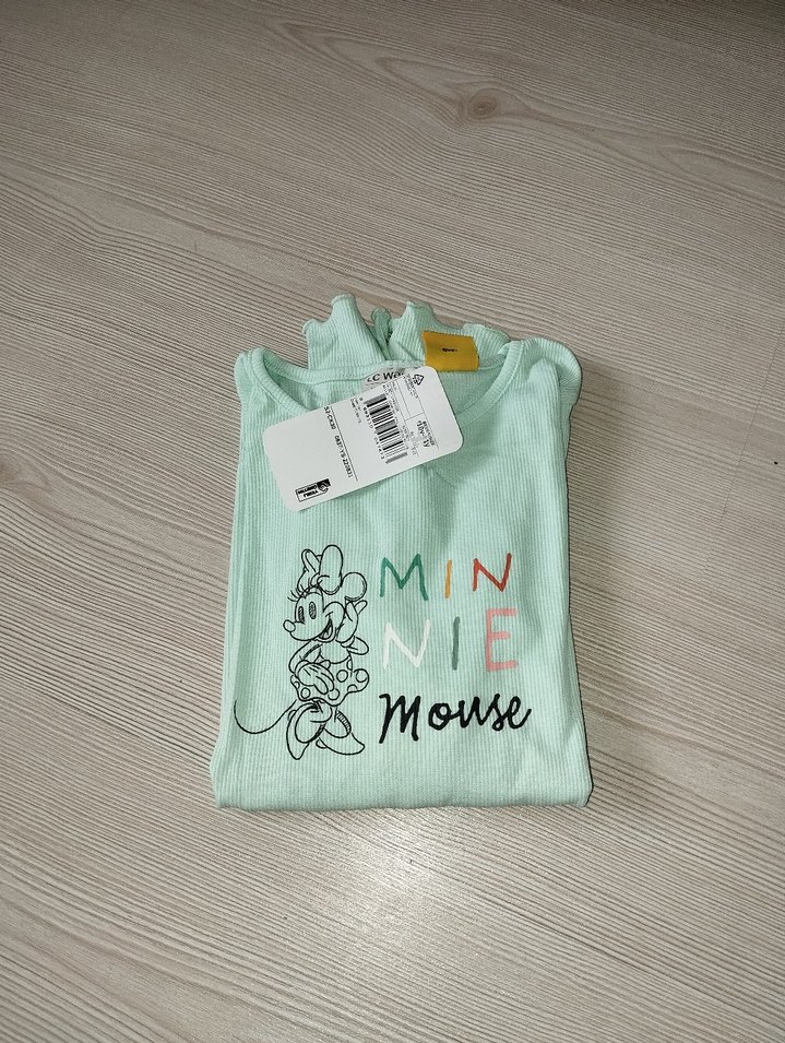 Yeşil renkli, kısa kollu, fitted kesim kız çocuk tişörtü. Crew neck yakalı ve Minnie Mouse baskılıdır. Trendy casual tarzda