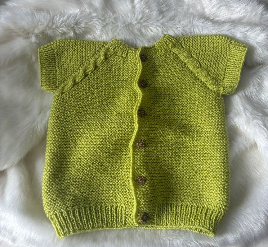 Kız çocuklar için yeşil, düğmeli, uzun kollu ve örgü dokulu, bohem tarzda, sade ve ince kesim hırka.