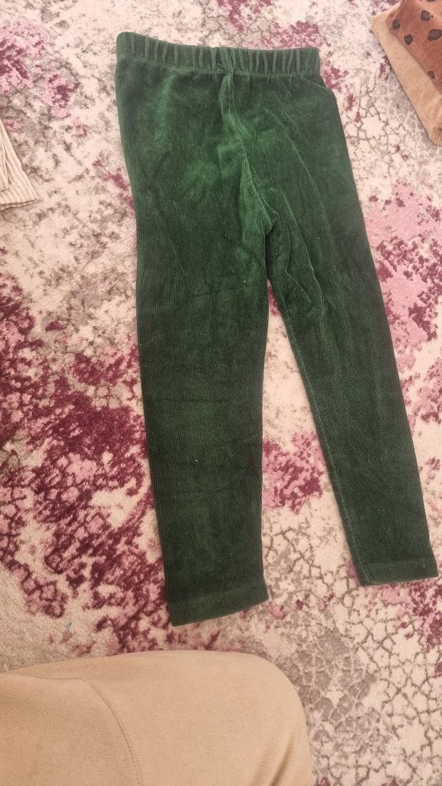 Koyu yeşil örme kız çocuk taytı, rahat kesim ve yumuşak, sıcak kumaşı ile bohem tarz sunar.