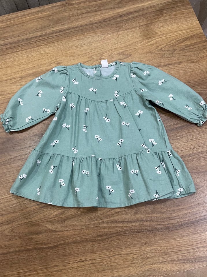 Tam baharlık, dirsek kollu, fırfırlı ve çiçek desenli yeşil bol kesim elbise. Defosuz. Lekesiz. Sıfır ayarındadır. Sayılı giyildi.