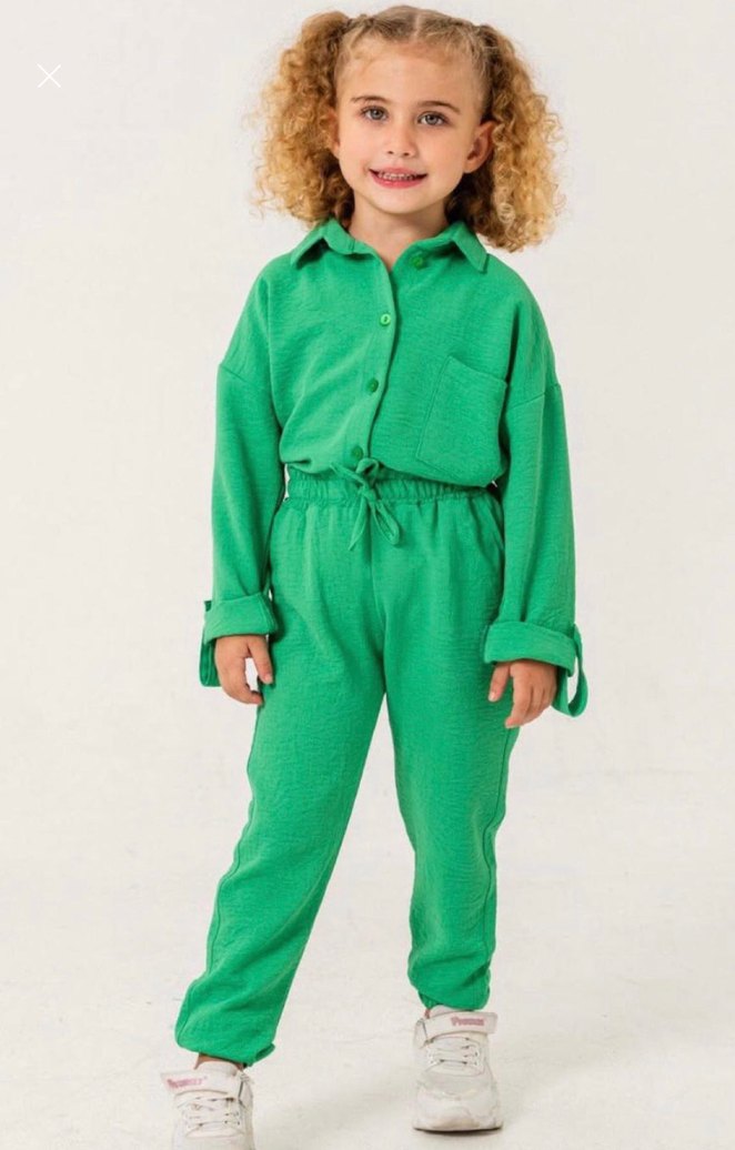 Pastel yeşil kız çocuk eşofman takımı, rahat kesim, uzun kollu ve yakası çıtçıtlıdır. Yumuşak ve sıcak kumaştan üretilmiştir, şık ve rahat bir görünüm sunar.