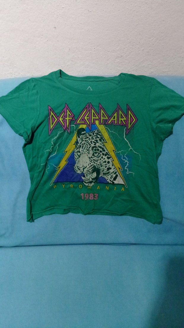 Yeşil, bol kesim kız çocuk tişörtü kısa kollu ve bisiklet yaka. Rock punk baskılı, '1983' yazılı, zahmetsiz şıklık sunar.