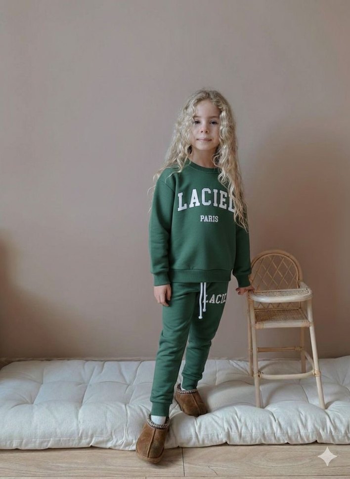Yeşil renkli, rahat kesim sweatshirt ve eşofman takımı. baskılı, uzun kollu ve yuvarlak yakalı. Yumuşak ve sıcak kumaştan üretilmiştir.