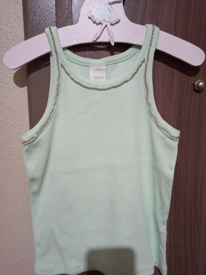 Yeşil pastel renkli, kolsuz ve fitted kesim triko atlet. Düz ve desensiz yapıda, yaka ve kol kenarlarında ince süsleme bulunur.