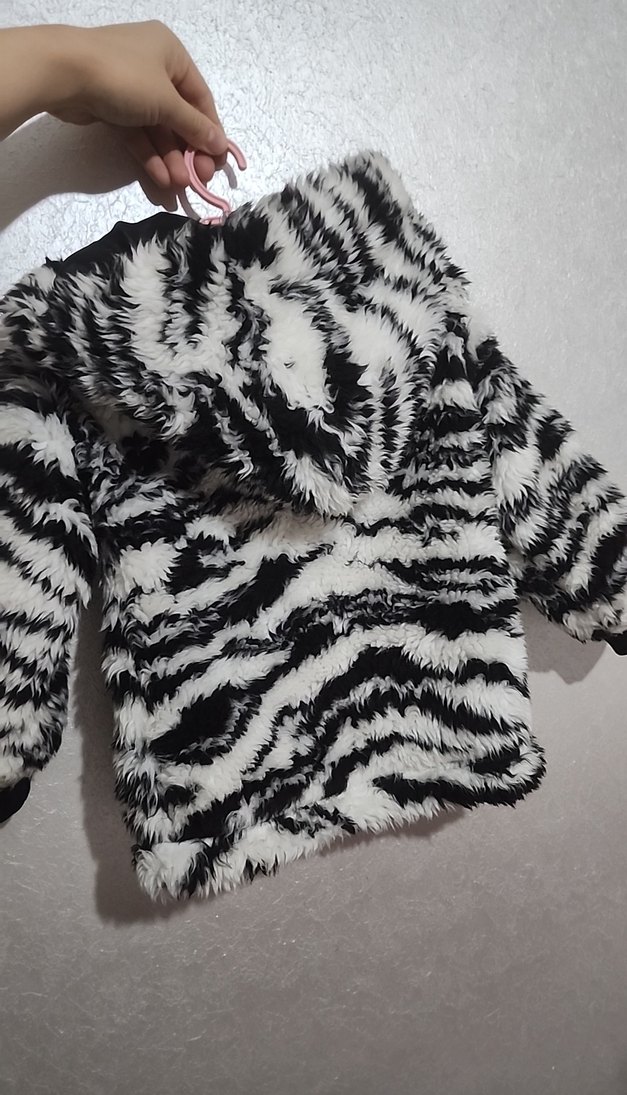 4-5 yaşa uygun içi astarlı mont..Kız çocuk zebra desenli, kapüşonlu ve kürklü detaylı ceket. Rahat kesimi ve yumuşak, sıcak dokusuyla rock punk tarzına uygun.