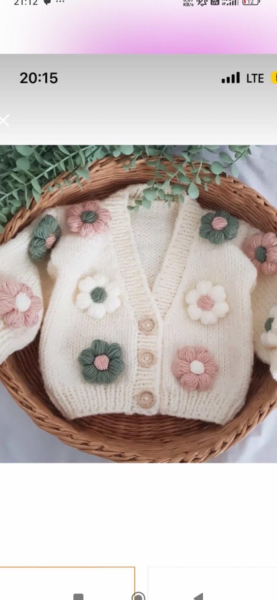 Krem renkli, uzun kollu, bol kesim crop kız çocuk hırkası, pastel tonlarda nakışlı çiçek detaylarıyla bohem tarzını yansıtıyor. Sıfır ürün. 1-2 yaş içindir. İstediğiniz renklerde ve istediğiniz yaşa göre örülür, fiyat farkı ile.