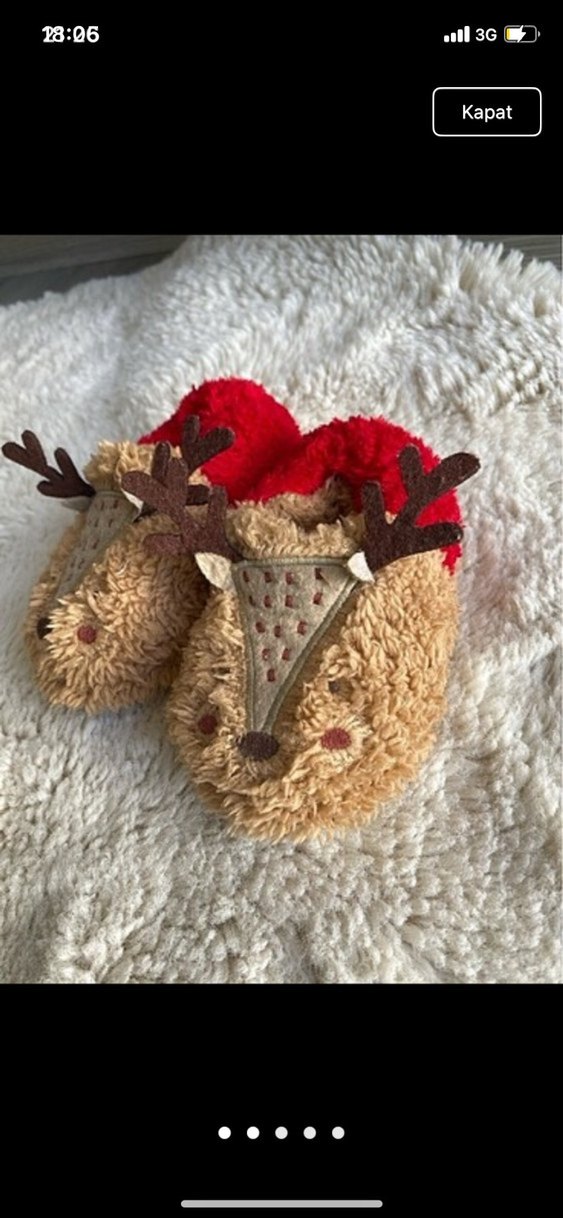 Kız çocukları için yumuşak kürklü, renkli nakış detaylı ve kürk süslemeli kahverengi bohem tarzı terlikler.