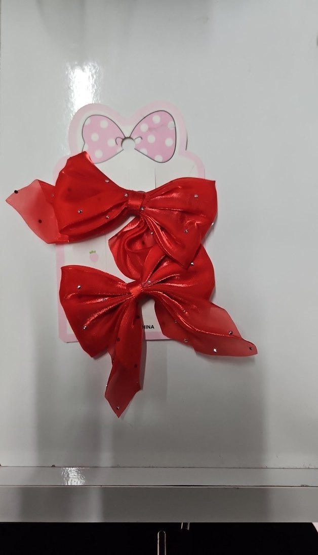 İşlemeli detaylara ve fiyonk tasarıma sahip kırmızı renkli iki adet kız çocuk toka seti.