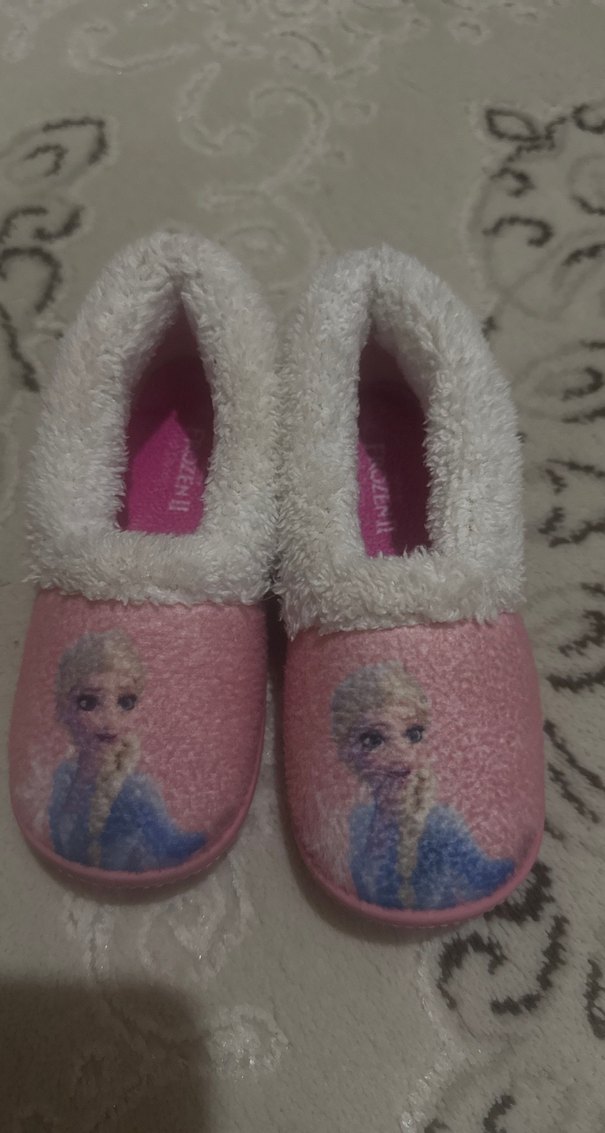 Kız çocukları için yumuşak ve sıcak kumaştan, peluş detaylı ve pastel pembe baskılı terlikler. Ev içinde konfor ve sıcaklık sağlar.