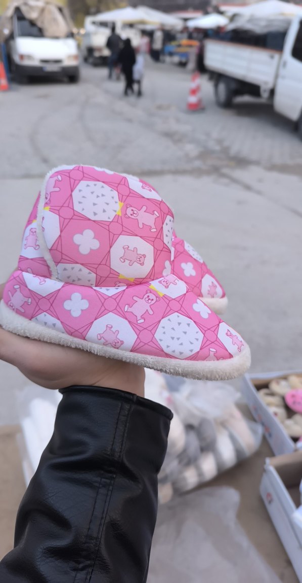 Kız Çocukları İçin Pembe Desenli Sıcak Ev Terliği