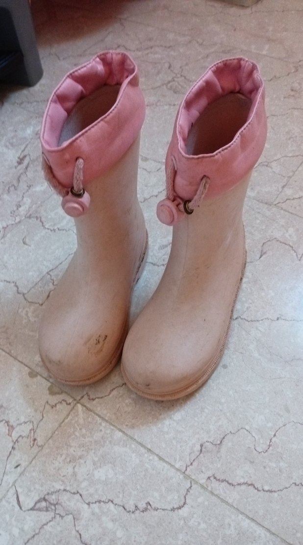 Pastel pembe renkte, lastikten yapılmış, tokalı kız çocuk çizmesi. Üst kısmında yumuşak pembe detay bulunur, sade ve desensiz tasarım. ürün yıkanmış olarak gönderilecektir üzerinde çizikler mevcut. bide ayakkabi içindeki tabana koyulan ayak sekillleri kayboldu. . alacak olan ona göre alım yapsın.