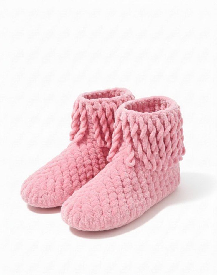 Kız çocukları için pastel pembe renkte, örgü dokulu, desensiz ve sade sıcak ev terlikleri. Rahat ve yumuşak dokusu vardır. Ürün El Örgüsü Olup Sıfırdır. İstenilen numara örülür.