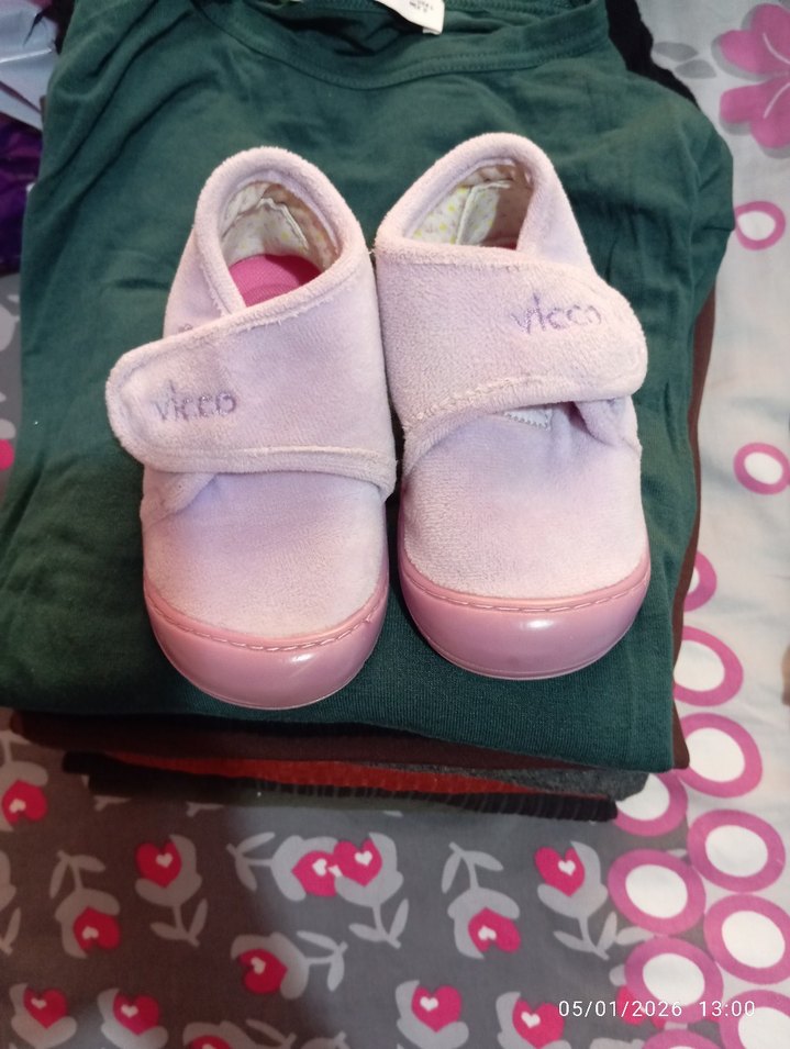 Kız çocukları için pastel pembe renkte, yumuşak fleece malzemeden yapılmış, cırt cırtlı sıcak terlik. ev ayakkabısı Vicco iki sefer evde giyildi