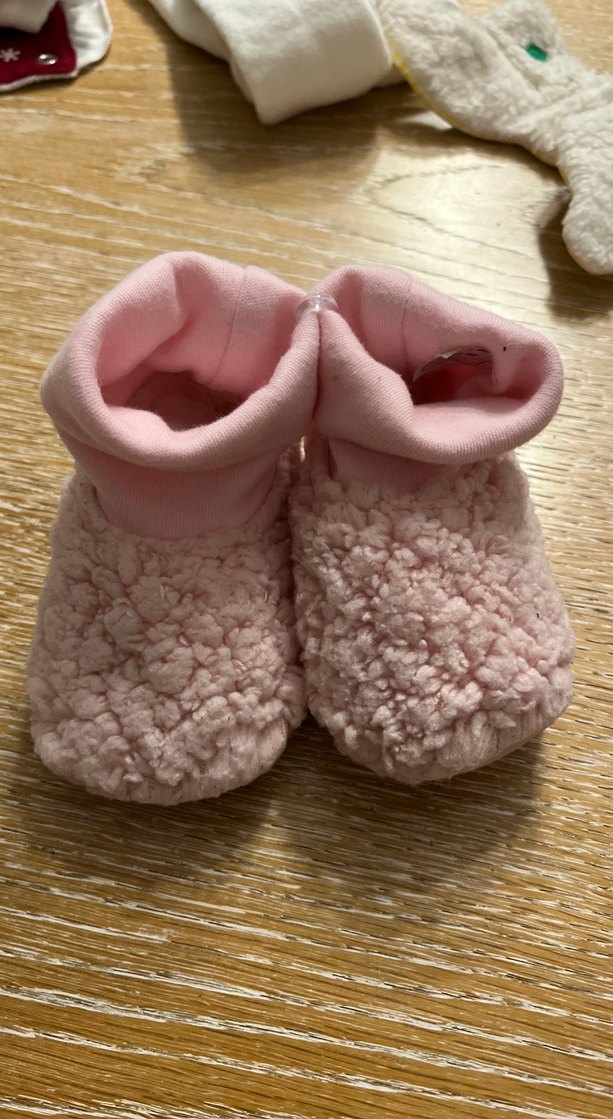 Kız çocukları için pembe, örgü dokulu, yumuşak ve sıcak patik. Düz ve pastel renkli, rahat bir tasarıma sahiptir.