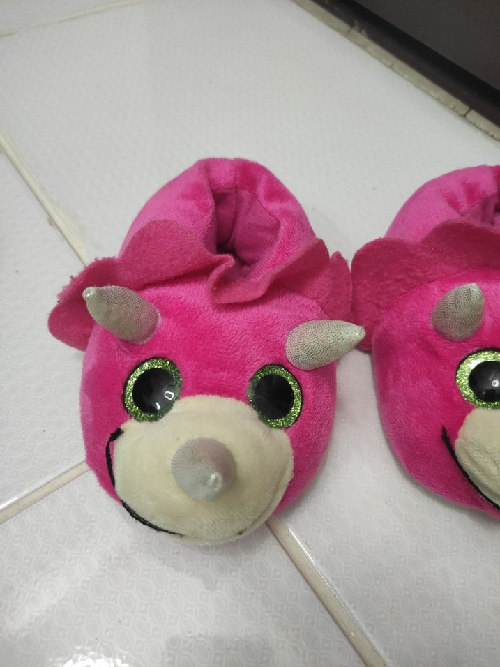 Pembe peluş kız çocuk terlikleri, cırt cırtlı ve renkli leopar desenli, rock punk tarzına uygun sıcak tutar.