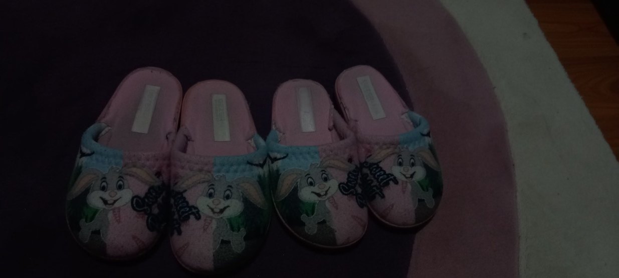 Yumuşak kürk kumaştan yapılmış, baskılı desenli ve cırt cırtlı pembe kız çocuk terlikleri.