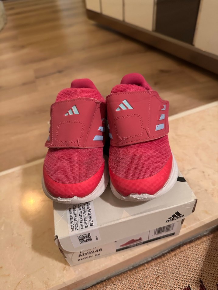 Renkli Adidas kız çocukları spor ayakkabısı, cırt cırtlı ve kauçuk tabanlıdır. Sokak stili ve baskılı desene sahiptir. tertemiz hafif baskı soyulması var