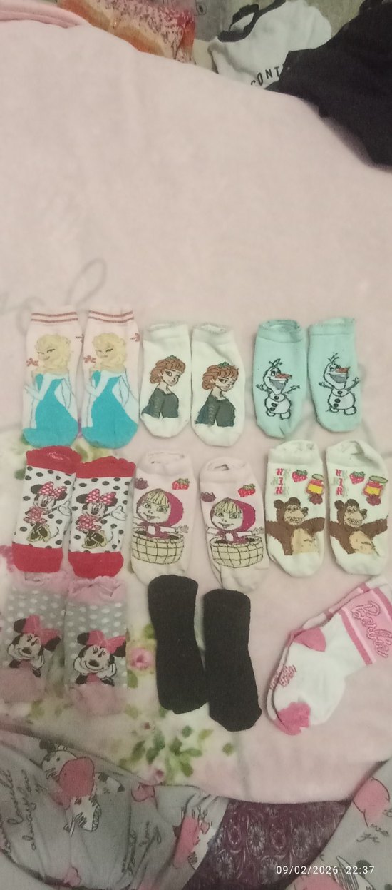 Kız çocukları için, çeşitli baskılı karakterlere sahip yumuşak örme çoraplar. hepsi Disney karakterli severek giydiğimiz çoraplar yırtık yok ama kullanıma bağlı tüylenmeler var bilerek alınız fiyata yansıttım hepsinin fiyatıdır 27-30 cm gibi 5-6-7 yaşa göre