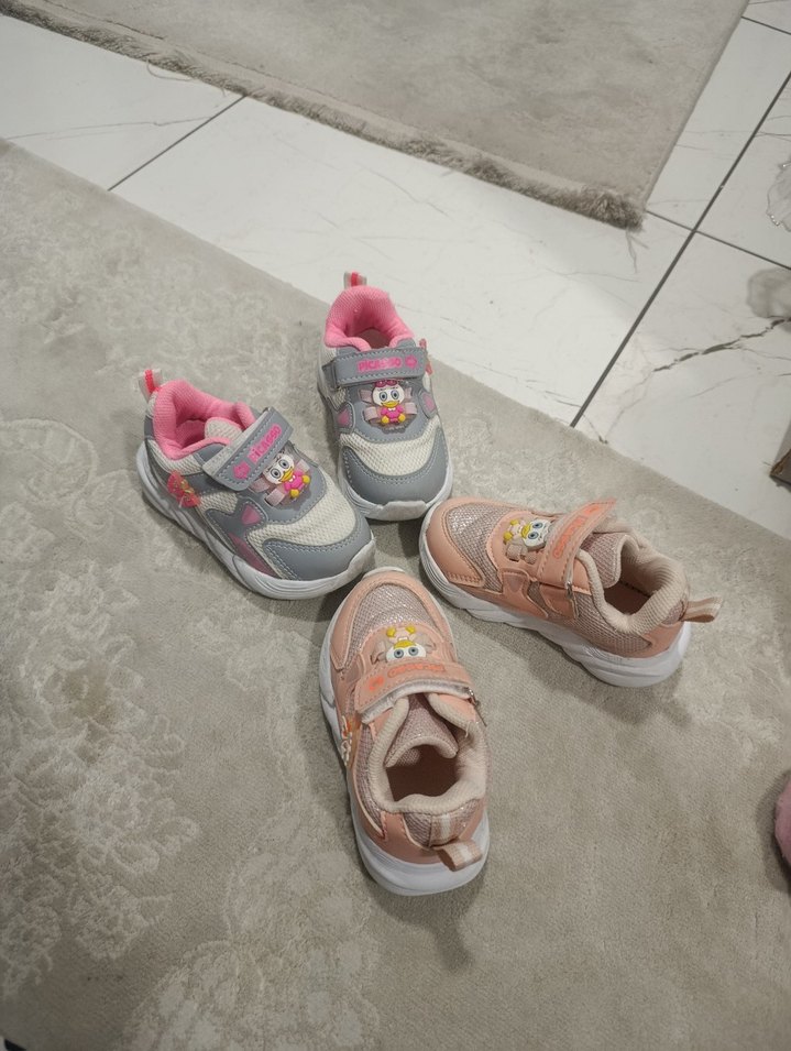 Renkli ve baskılı desenlere sahip, Velcro bantlı kız çocukları için spor ayakkabı. Kauçuk tabanlı, sokak stili için uygun. 2'li fiyattır kızıma artık olmadığı için satıyorum çok gitmedi kızım