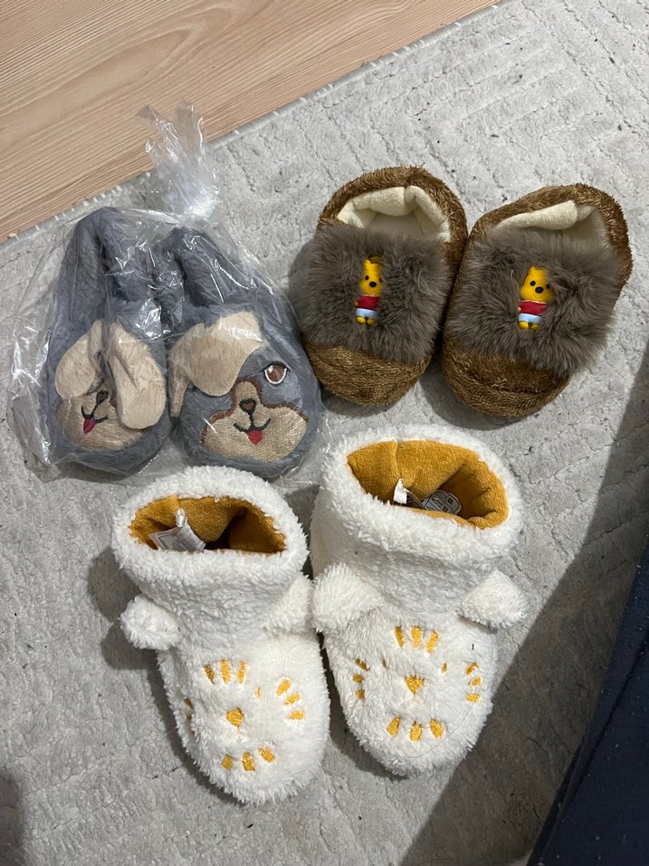 Kız çocukları için sıcak, yumuşak kumaştan yapılmış, kürk detaylı ve nakışlı gri ve kahverengi tonlarda ev terlikleri. Rahat kullanım sağlar.