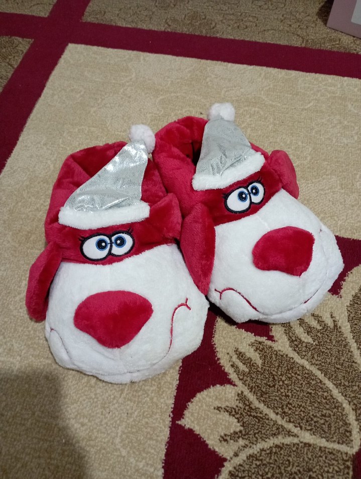 Renkli kız çocukları ve kadınlar için kırmızı, yumuşak ve tüylü detaylı, pop kültür baskılı sıcak peluş terlikler. 36 ve 37 numara ayağa oluyor.