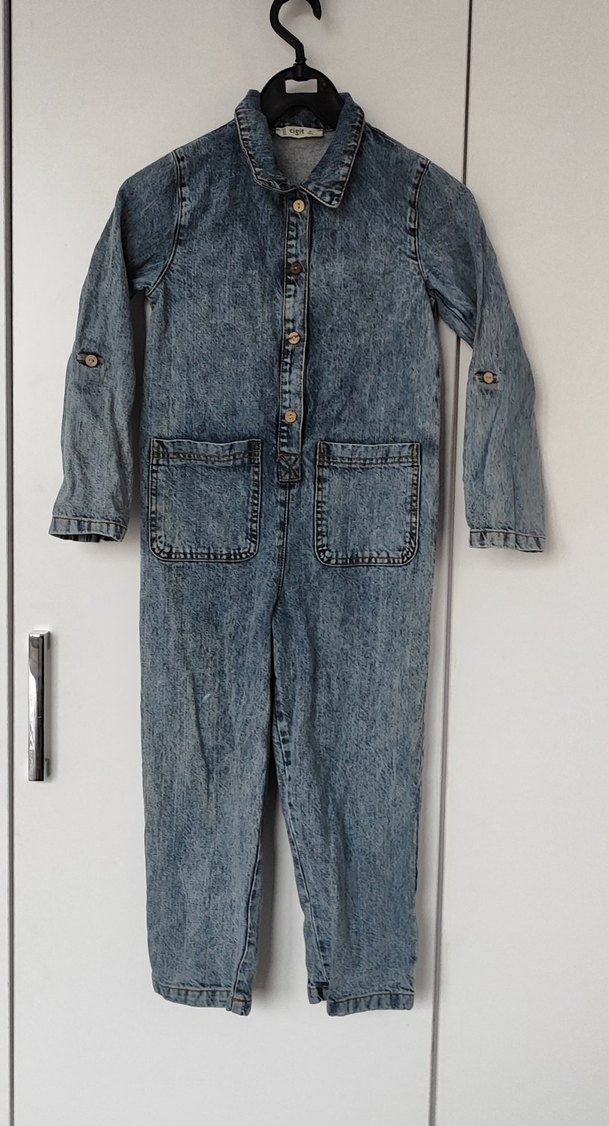 Kız Denim Tulum, Düğmeli, Uzun Kollu