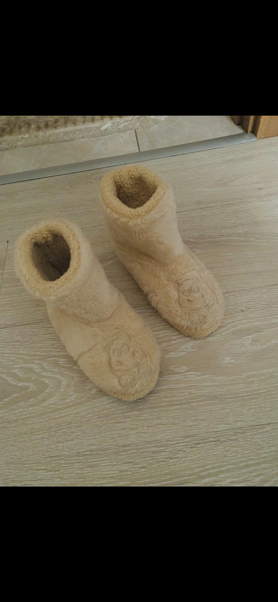 Bej renkte, kürklü detaylara sahip kız çocuk terlikleri, yumuşak ve sıcak kumaşıyla konfor sağlar. Klasik tarzda, ev içinde rahat kullanım için uygundur. numara 32-33