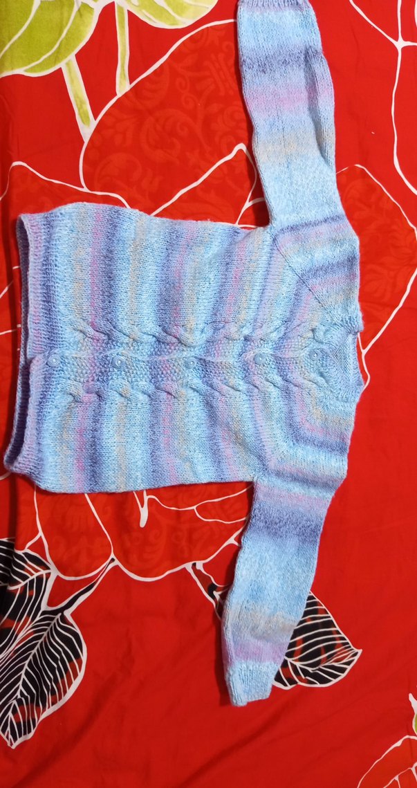 Pastel renklerde, bohem tarzda, triko örgüden yapılmış, boğazlı ve uzun kollu, vücuda oturan kız erkek çocuk kazağı.