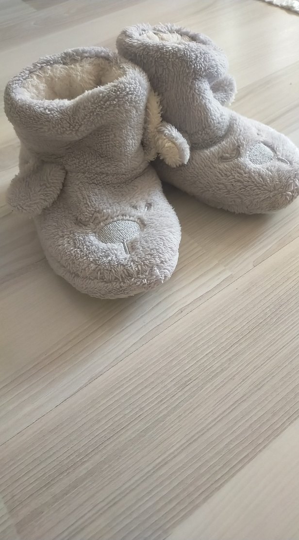Kız-Erkek çocukları için gri renkte, yumuşak ve sıcak kumaştan, kürklü detaylı ve nakışlı desenli ev terliği. Sade ve rahat bir tarza sahiptir.