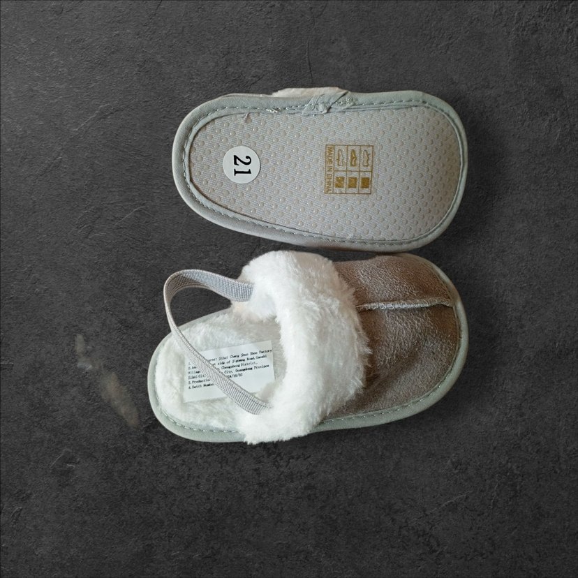 Kız Erkek Çocuk Gri Kürklü Sıcak Ev Terliği
