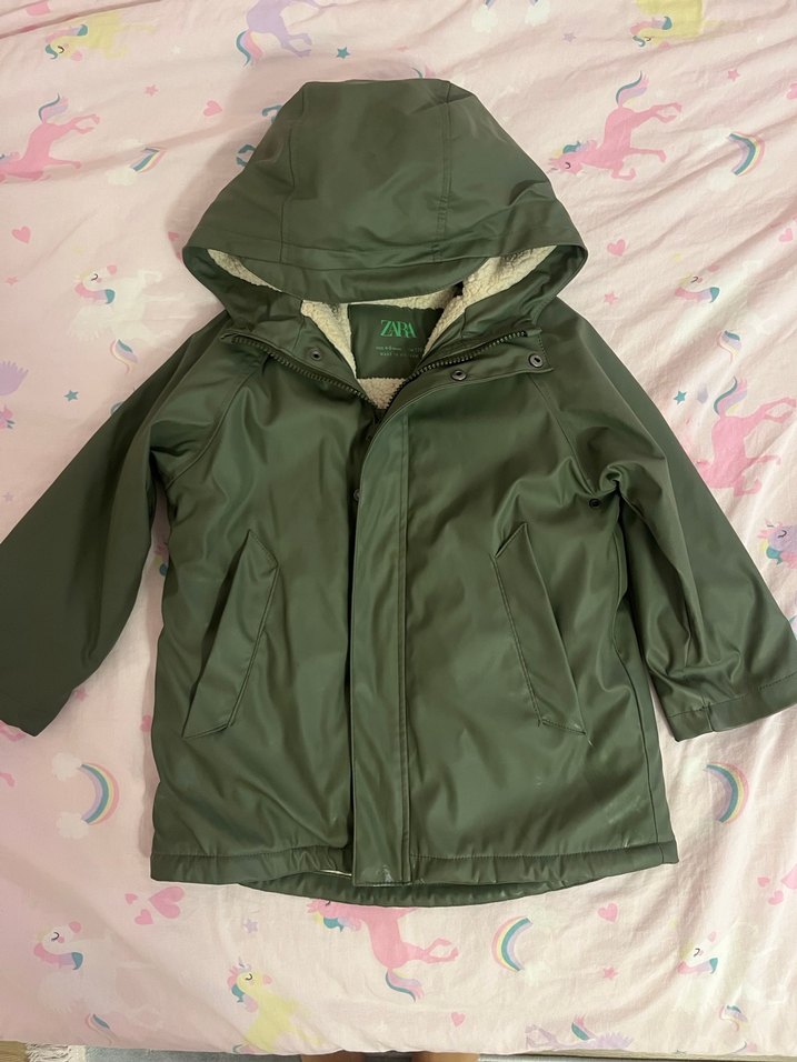 Kız - Erkek çocuk için haki renkli, fermuarlı, bol kesim yağmurluk. Notch yaka ve yumuşak fleece astarıyla rahatlık sağlar. Sokak stiline uygun sade tasarım. ️