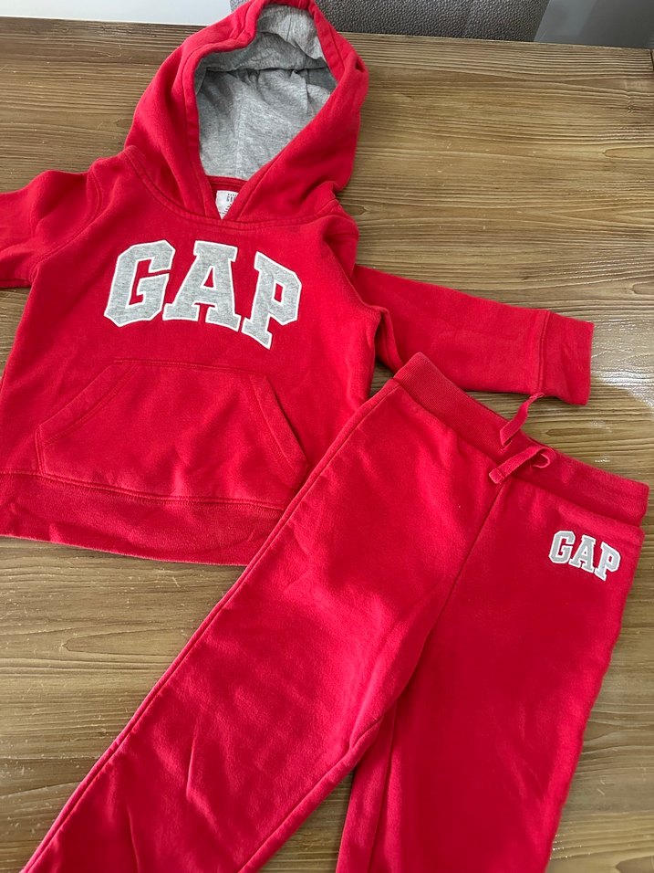 orijinal yurt dışı mağazasından alındı çocuk kırmızı GAP sweatshirt, gri baskılı logo ve kapüşonlu, uzun kollu. Eşofman altı, belden ipli ♀️