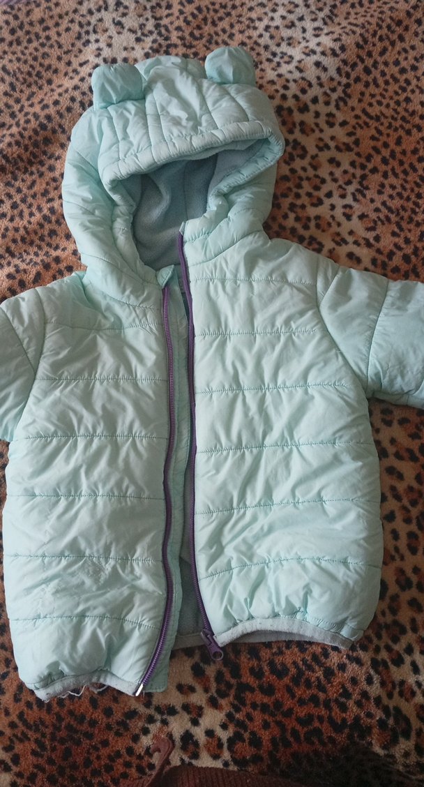 Kız çocukları için mavi, kürklü ve kapüşonlu, yumuşak ve sıcak kumaştan yapılmış, sokak modasına uygun dar kesim bir mont.
