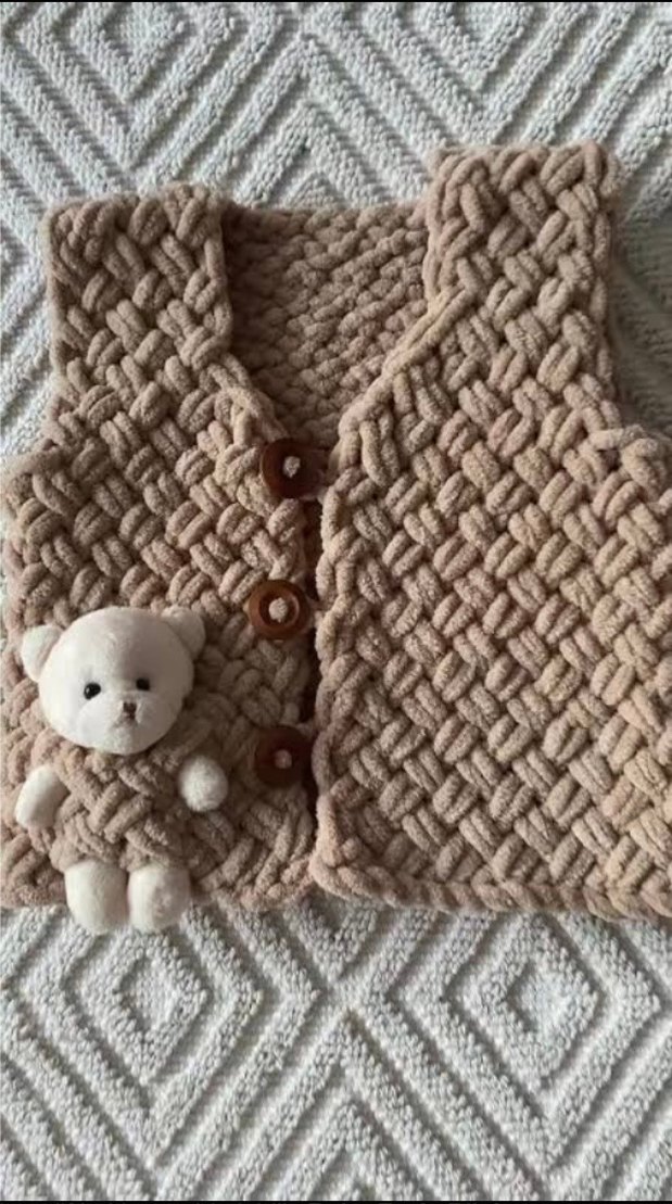 Kız/erkek Çocuk Örgü Bohem Kahverengi Yelek