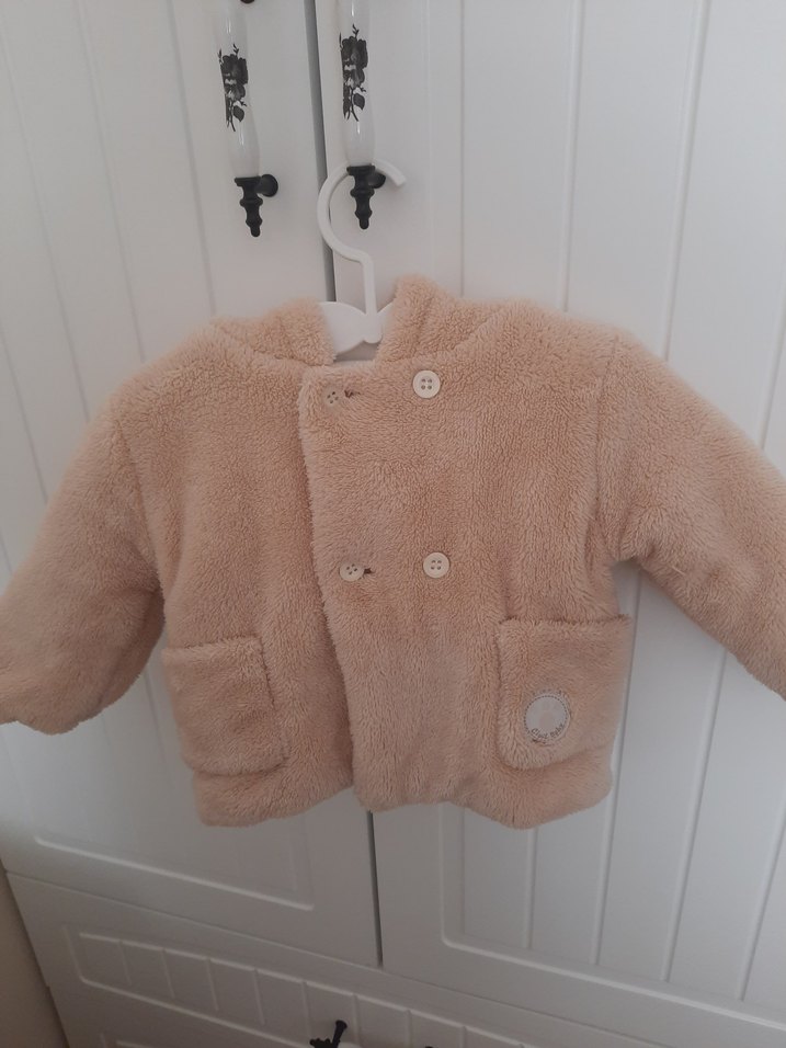 Bej renkli, düğmeli ve kruvaze yakalı kız çocuk polar ceket. Rahat kesim ve yumuşak dokulu, iki ön cep bulunur.