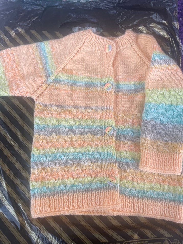 Uzun kollu, yumuşak örgüden yapılmış, bohem tarzda, pastel çok renkli çizgili, desensiz, vücuda oturan kız hırkası.