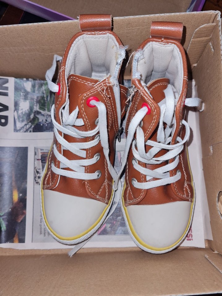 kız kahverengi spor ayakkabısı. herhangi bi yırtığı sorunu yok . 27 numaradır