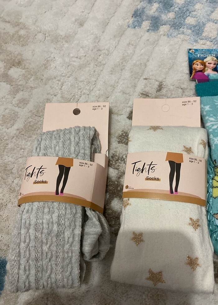 İki adet kilotlu çorap ev patiği 22 23 numara ayağada oluyor kalıbı geniş kilotlu çorap da 1 3 yaş arası