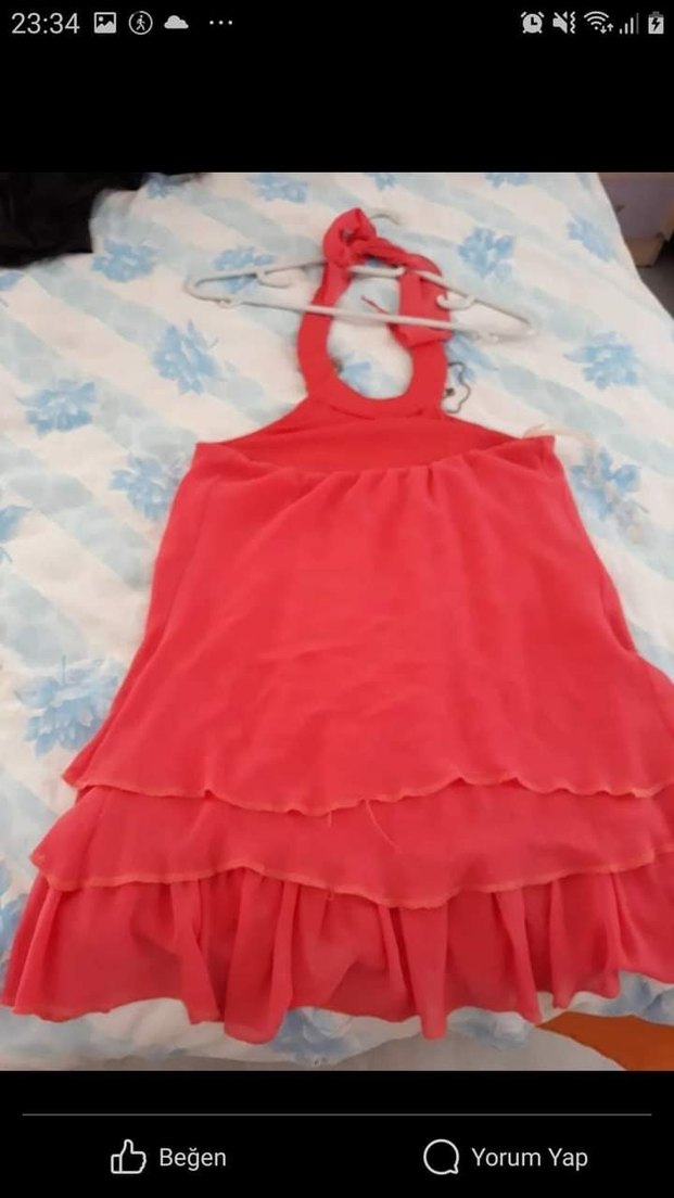 Askısız, kolsuz kırmızı kız elbisesi, fırfır detaylı ve vücuda oturan kesimiyle, yumuşak sentetik kumaştan üretilmiştir. Bohem tarzına uygun.