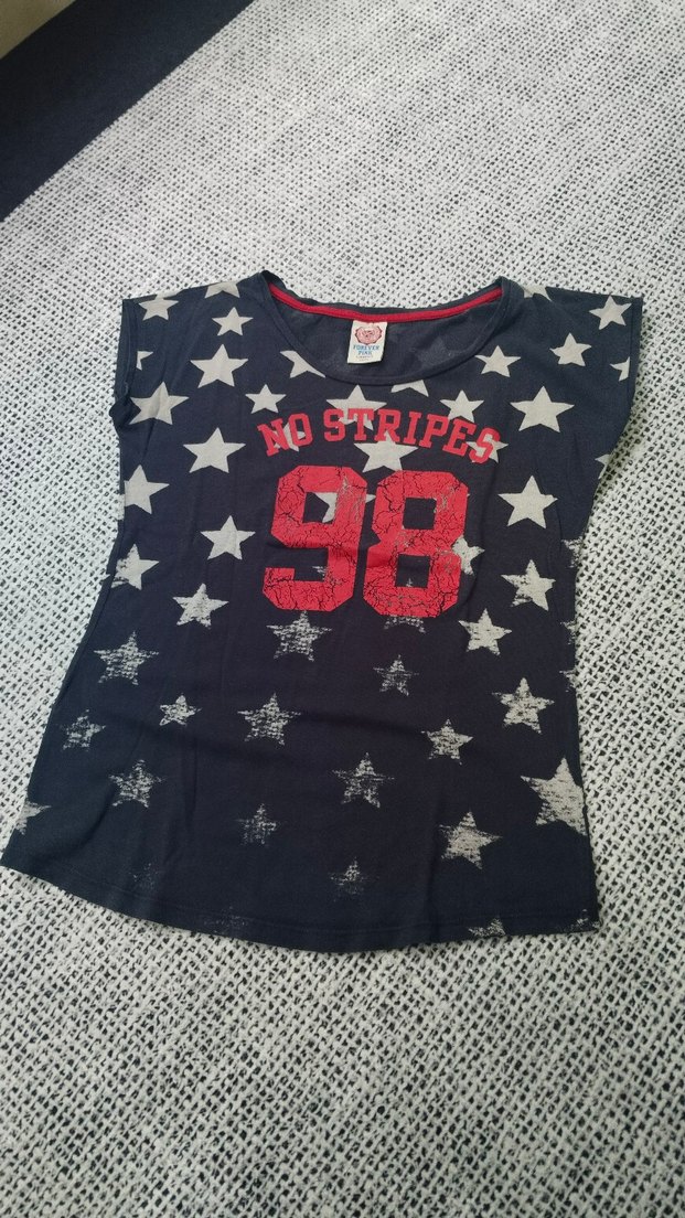 S beden #vintage Lacivert renkte, kısa kollu, salaş kesim tişört Üzerinde yıldız desenleri ve 'No Stripes 98' baskısı bulunur. Örme sentetik kumaştan üretilmiştir. ⭐